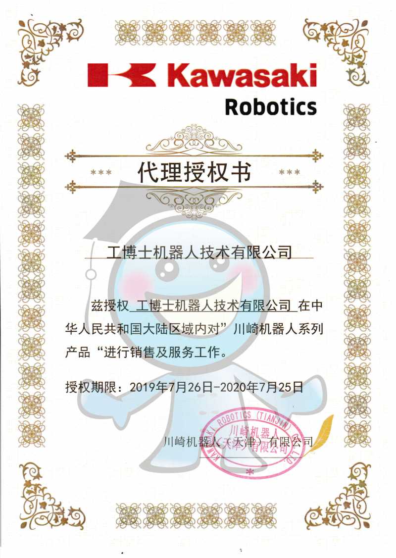 川崎機器人授權證書